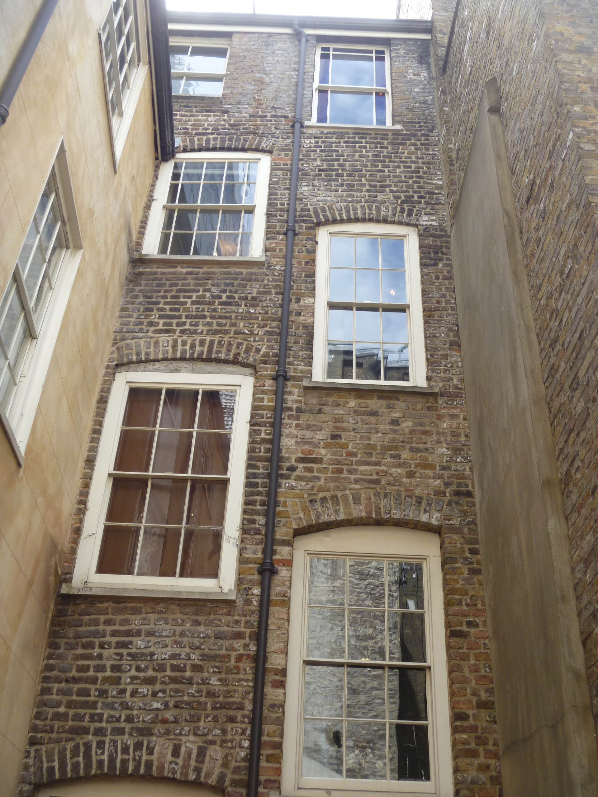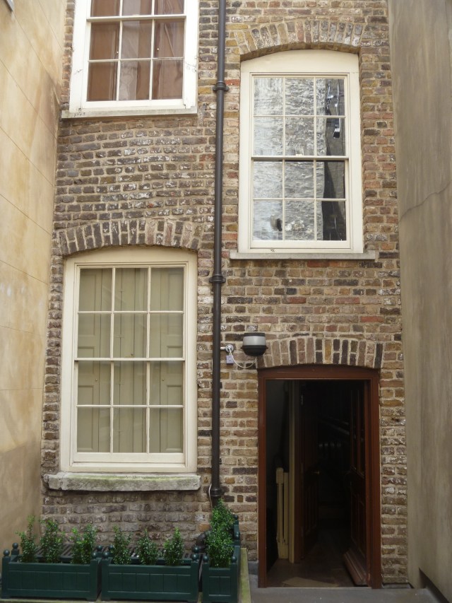 The Friends of Benjamin Franklin House rescued the house from its dire condition at the end of the last century and after a great deal of hard work the Grade 1 listed Georgian building was opened to the public on 17 January 2006 which was 300 years to the day since the birth of Benjamin Franklin. Miraculously it is the only surviving house on the street. From the front this is not at all obvious but at the back the neighbouring houses are all of new brick.
