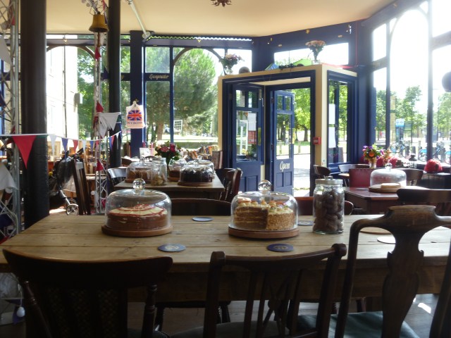From the peace and shade of the Bonnington Square Garden we headed for nearby Newport Street (SE11) and The Ragged Canteen at Beaconsfield (QL p.115). However when we arrived we found that it is closed for most of August. On our way there we had passed through what was left of the original Vauxhall Pleasure Gardens and we had noticed a very nice tea shop with a buzz of friendly chatter and gentle music coming through the wide open doors and windows (it was a very hot day), so we decided to turn back and take our afternoon break there. It turned out to be an excellent choice despite not being Quiet; there’s a classical guitarist strumming gently in the corner.