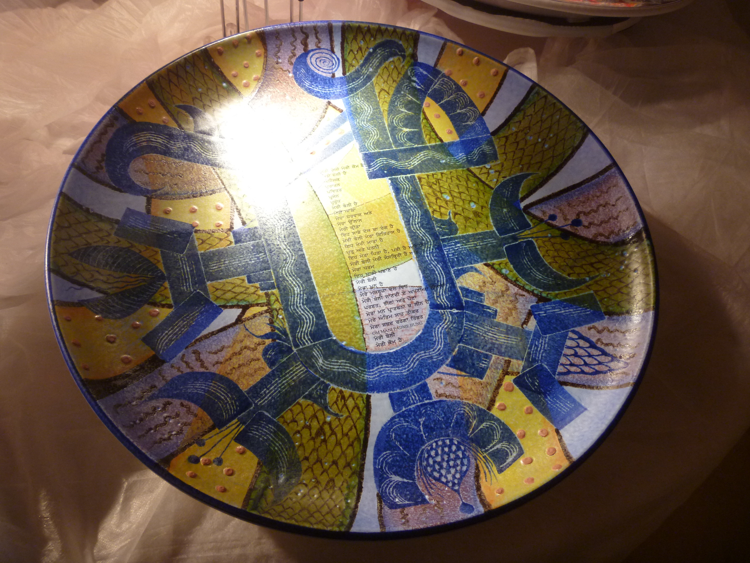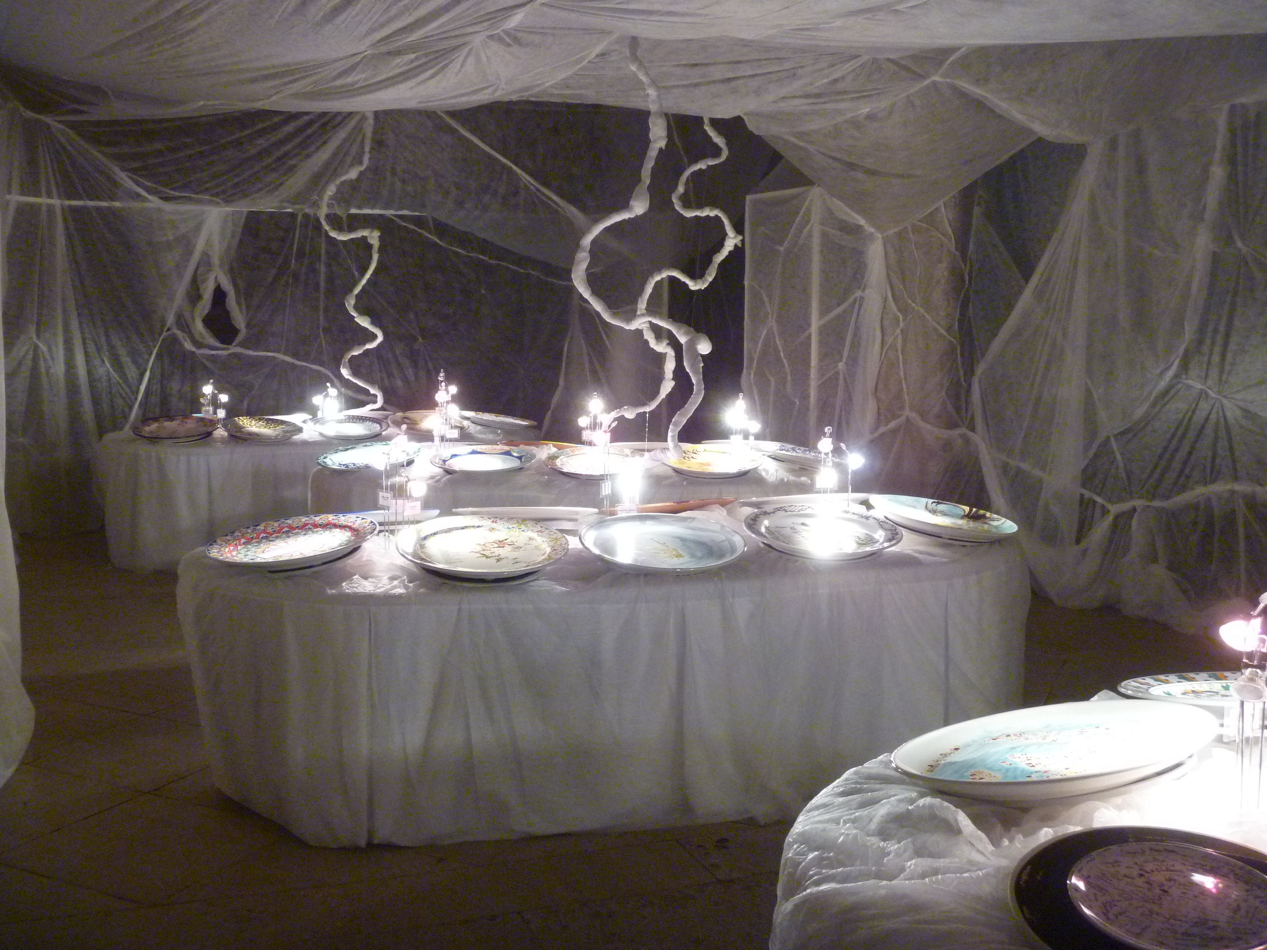 We chose and booked a Quiet restaurant for our evening meal : Carnevale near The Barbican (QL p. 91). After an hour or so in which to refresh ourselves we then walked the mile or so to and from the restaurant. We marvelled at the height of so many buildings, the almost hidden churches and all the new work that seemed to be going on in order to cram this city with even more curiously shaped high buildings. On our way back we noticed that one of the hidden churches was still open so we peeped inside at the exhibition “This is not a Plate : your heritage, your language, your culture“. St Ethelburga’s Church (QL p. 66) is a centre for peace and the exhibition and late opening were to coincide with the London 2012 Olympic Games.