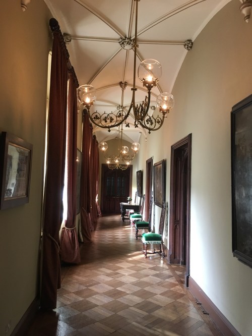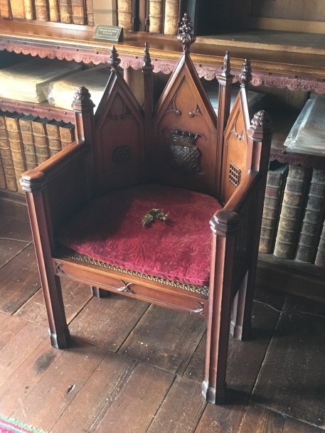 From the Reception Courtyard, where we booked for the first house tour at 11.15, we climbed up a short hill to the Castle itself. We took note of the gardens, admired the view and explored the Castle Courtyard whilst we waited for the Tour to begin. At 11.15 a small group of us assembled in the Cromwellian Hall where David gave us a brief history of the castle and changes brought about by various owners and architects probably the most famous being Augustus Pugin. Yes, he’s been mentioned here by Milady several times. His Neo Gothic style is particularly suited to this former fortress and it would seem that he had virtually free run with his designs at Chirk.