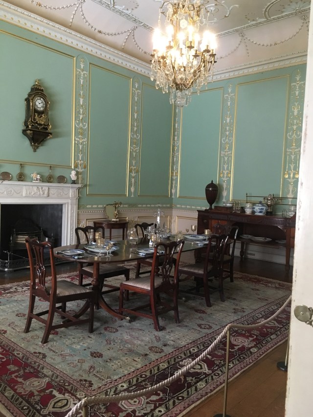 The State Dining Room was at one time decorated by Pugin but was redecorated in the neo-classical manner as it had been for Richard Myddelton, MP, in the late 1770s by Lady Margaret Myddleton